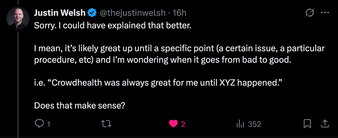 I will say I’ve been pretty inspired by how active the CrowdHealth team is on social media. As you can see from the X post, they jumped right in and started answering people’s questions.